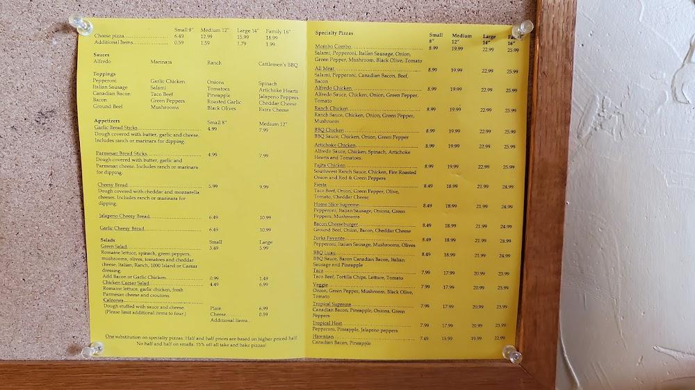 Appetizers include tasty garlic bread sticks and cheese-filled options. Salads provide a lighter option, perfect for pairing with pizza. Prices remain affordable, catering to various budgets, with most items sitting well under $20.