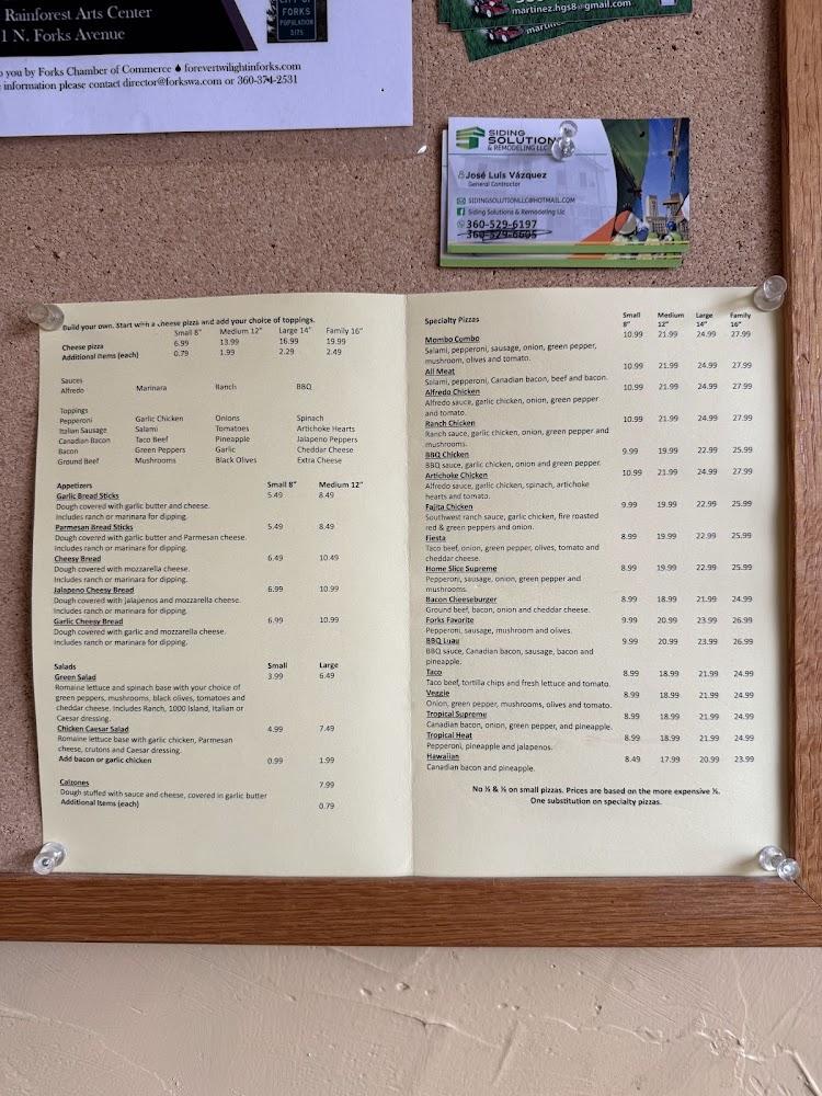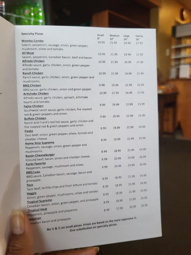 Welcome to Home Slice Take N Bake, your go-to pizzeria in Forks, WA! Located at 110 S Forks Ave, we serve delicious, traditional pizzas ready for you to customize with your favorite toppings. Whether you prefer to dine in our relaxing atmosphere or take your meal to go, we have options for everyone. Enjoy lunch, dinner, or a sweet dessert with friends and family, as our space is accessible and kid-friendly. With convenient parking and reservations accepted, we make it easy for tourists and locals alike to savor a slice of our delightful pies. Visit us today!